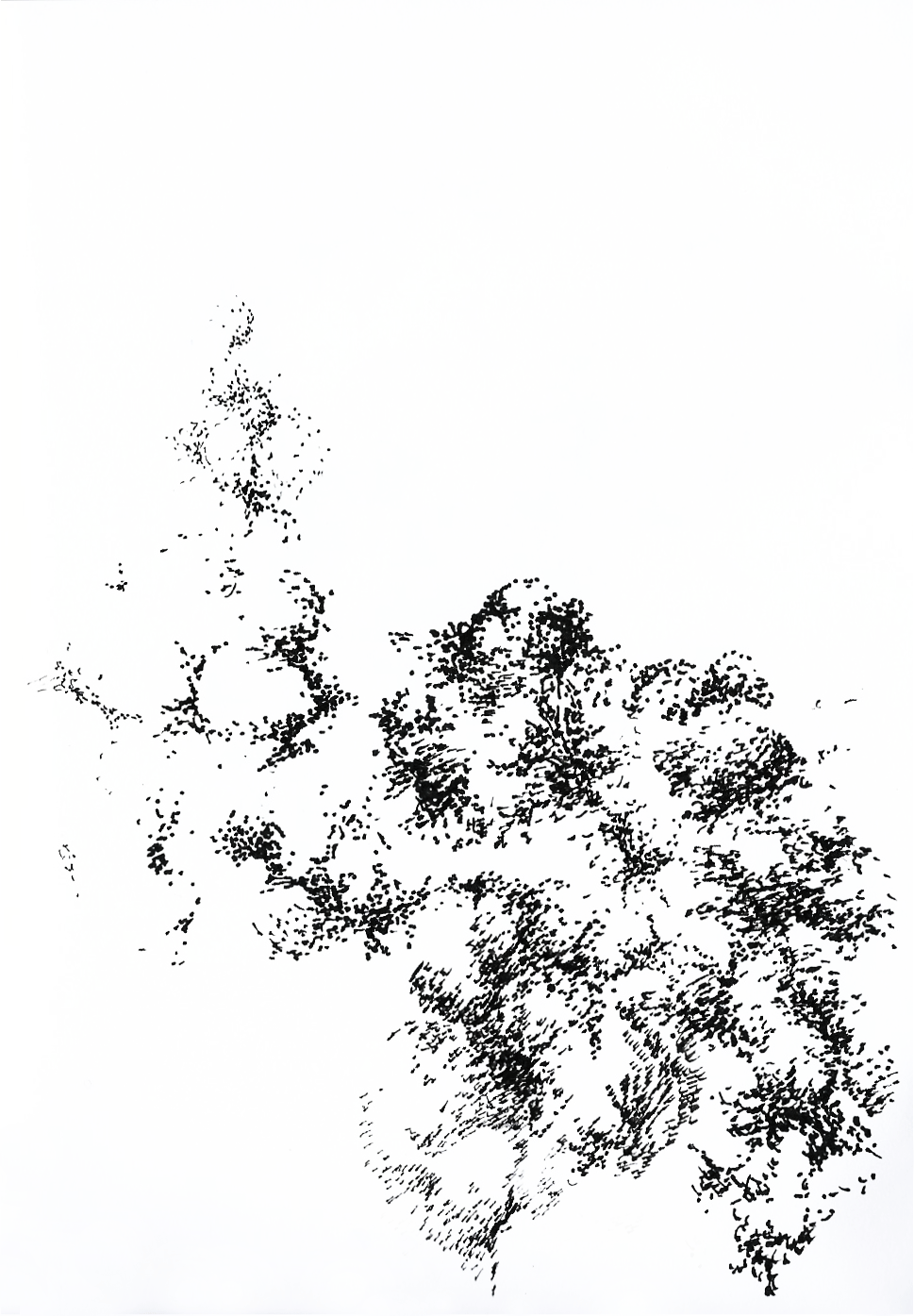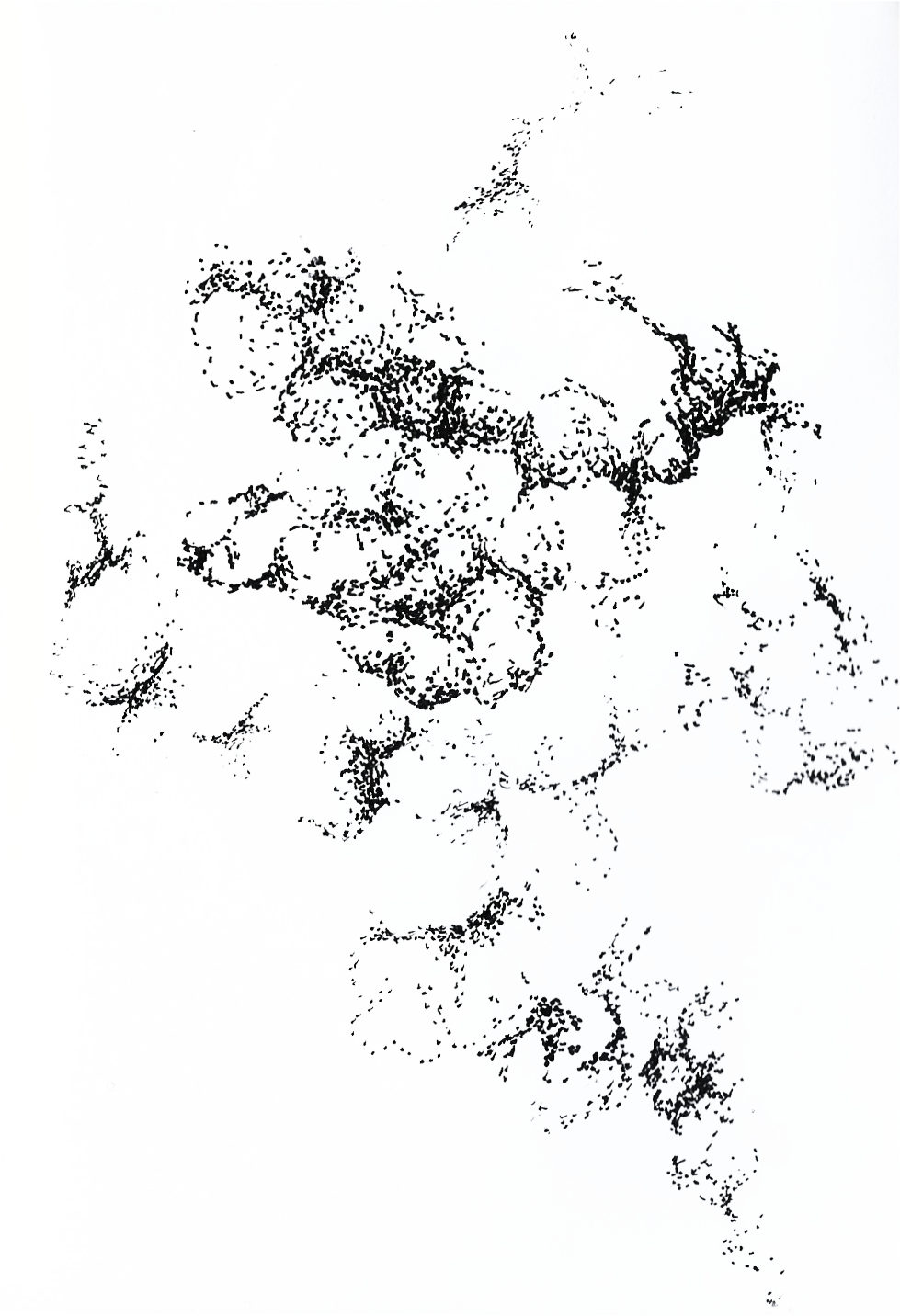 At first glance, a negative print of a strange and incomplete topographic map that follows no geographical logic.