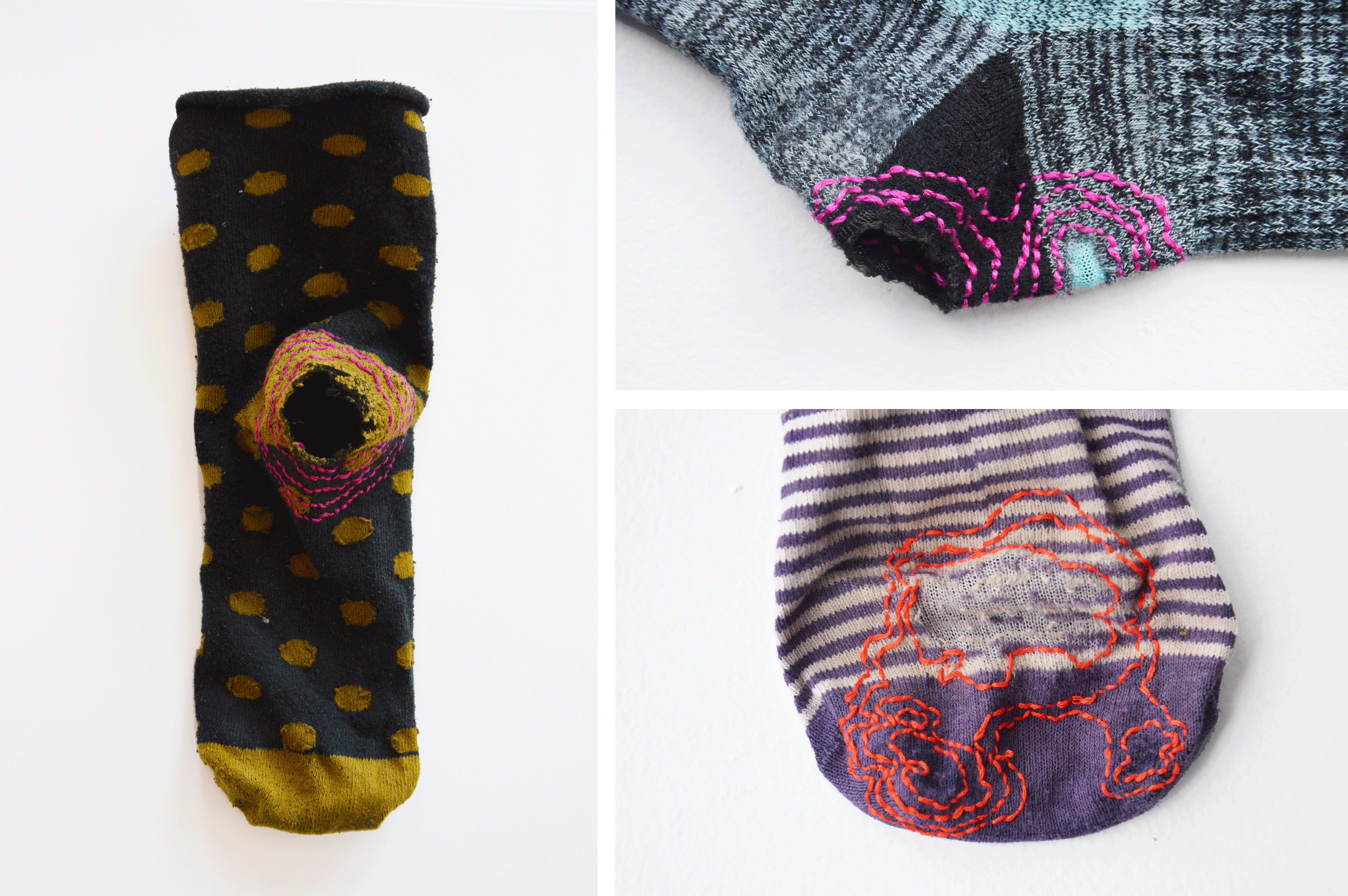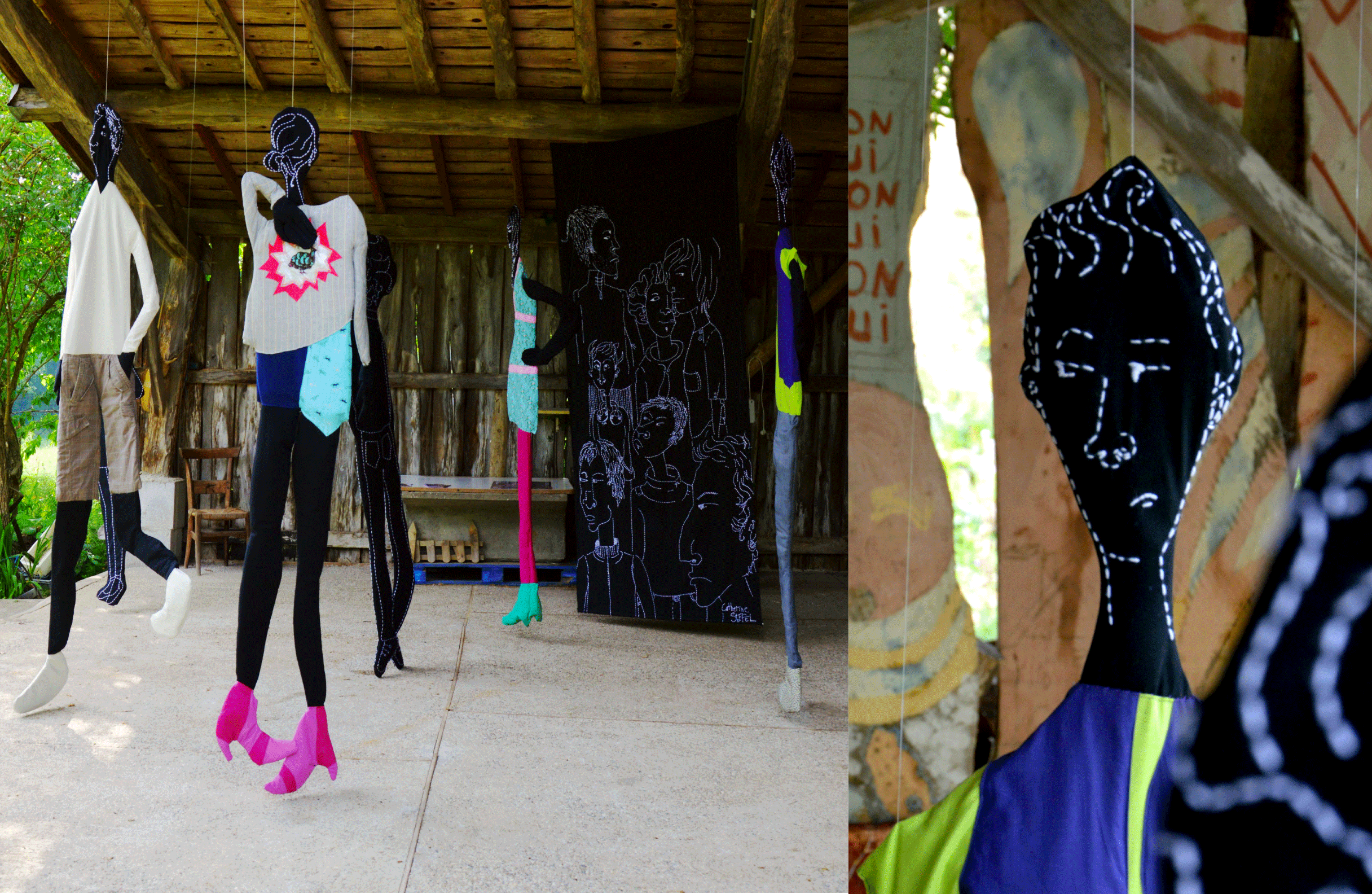Avec la récolte des chaussettes de mes compagnons de route, j’ai souhaité figurer le temps partagé.