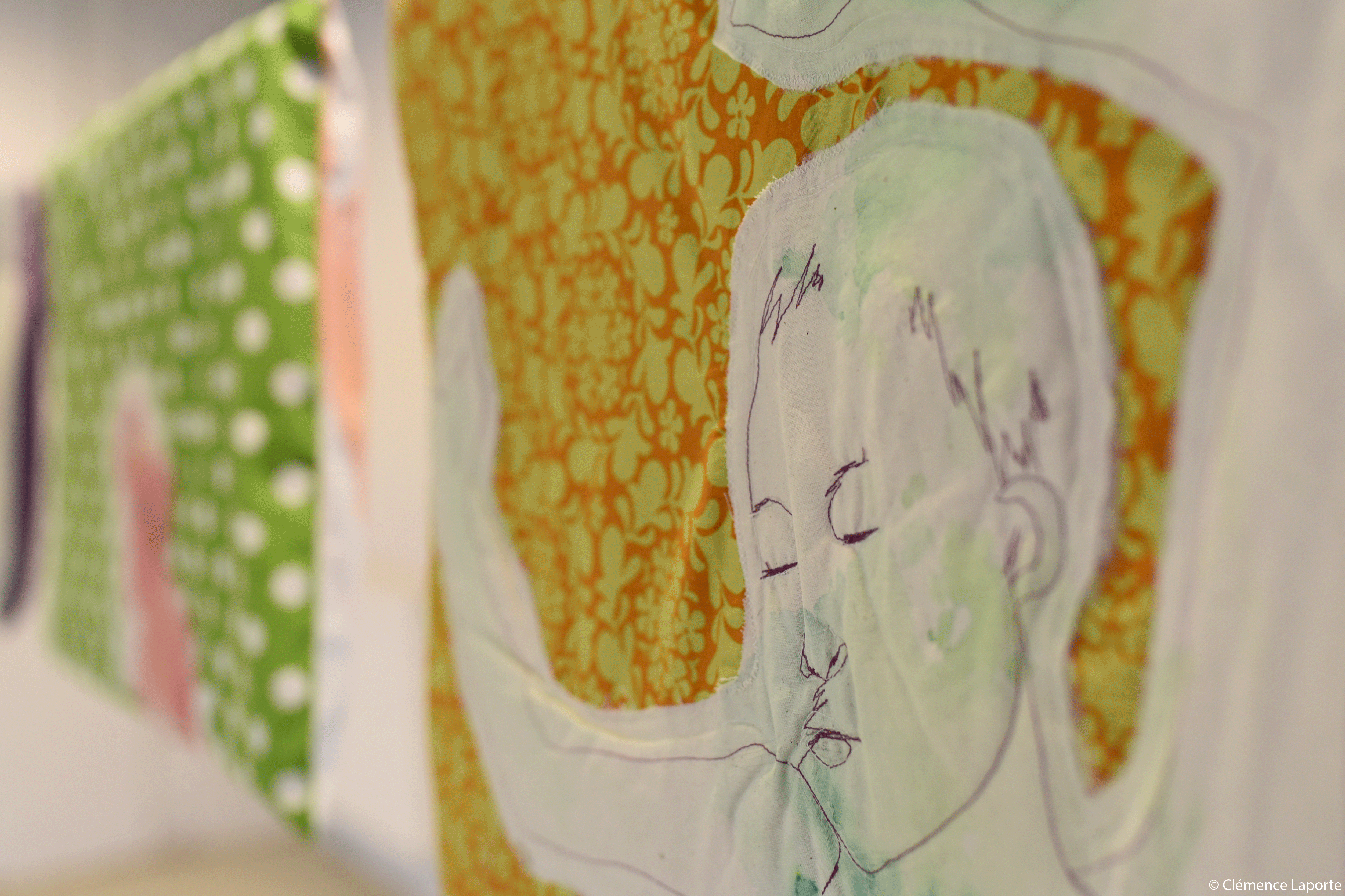 Leurs figures s’inscrivant à travers le textile de sorte à ce que ce temps partagé se fige tel un arrêt sur image.