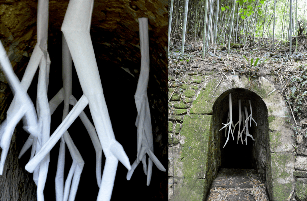 Here, one can brush against the underground’s entrails by sliding in between bronchial tubes that breathe as the wind blows.