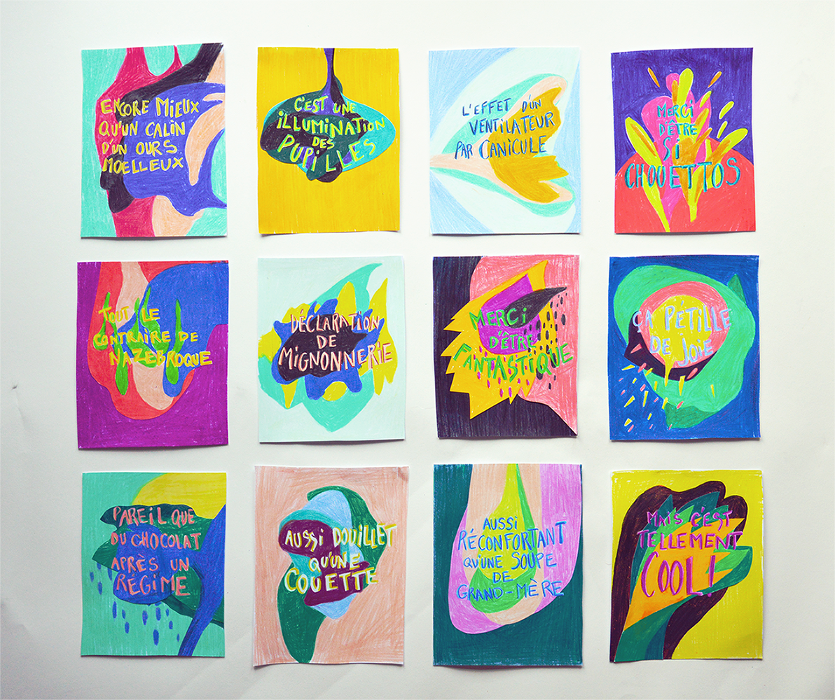 Ces déclarations colorées viennent glorifier les rencontres présentes ou passées, qui par leur simple pensée redonne un élan de joie.